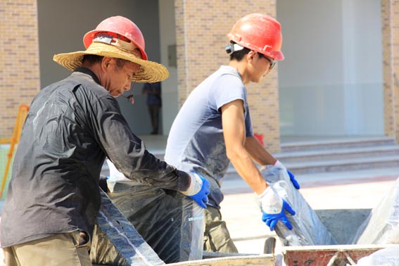 六月驕陽似火,翔順建筑工地上卻是一派繁忙的景象。在這大熱天,工地上數(shù)百名頭戴安全帽的建筑工人仿佛被煙塵籠罩著,天氣悶熱得要命,一絲風也沒有,稠乎乎的空氣好像凝住了,實在讓人不好受??墒菑倪h處聽,不時傳來的一陣又一陣“叮叮當當”的敲打聲及拖拉機、罐車、塔吊等工程機器發(fā)出轟鳴聲,工地上正干得熱火朝天,這些可愛又可敬的建筑工人在工地現(xiàn)場緊張而有序地施工。他們放棄了太多休息時間,放棄了與家人的團聚,在建筑工地忘我的辛勤工作著,工人們個個頭頂烈日,一個個汗流浹背,汗?jié)n布滿衣衫,滿面塵埃的臉上那一雙雙有神的眼睛,笑容燦爛。他們站在自己的崗位上認真仔細地工作,忘卻了言語,忘記了勞累,忘記了家中的大事小事,每天穿梭在數(shù)十米高的外腳手架上,卻沉醉于忘我的勞動之中,這一刻他們是忘我的,而我們被這樣的勞動場面感動了、震撼了。