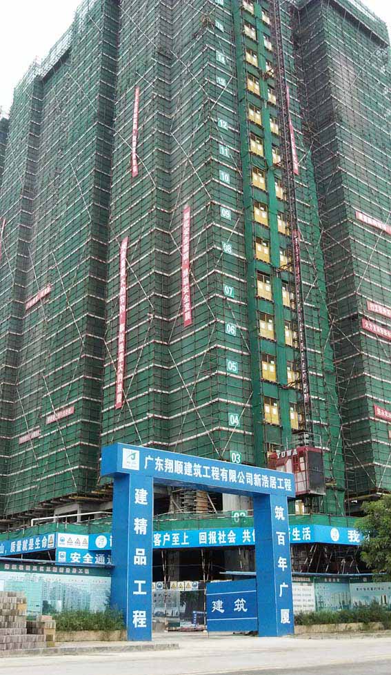 第33幢工程座落于新興縣黃塘村前垌,地上為20層鋼筋砼框架結(jié)構(gòu),配有優(yōu)美的園林景觀、首層臨街商鋪、兩層地下停車庫等相應配套設施,樓距適宜、戶型合理,吸引了不少置業(yè)者的目光,銷售情況良好,是我司致力于打造的高尚住宅之一。工程于2012年10月試樁開工以來,施工進展迅速,主體結(jié)構(gòu)在2013年5月初就已按時完成預售節(jié)點,目前正在進行墻體砌筑和室內(nèi)抹灰工程。另外本工程已申報省雙優(yōu)工地,而在2013年6月份縣市重點工程督查組蒞臨現(xiàn)場檢查指導工作時,也得到了一致好評。