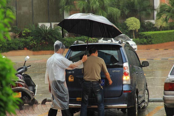 5月的大部分時間都在下雨。透過淅淅瀝瀝的雨線,映入我視野的是那撐著大雨傘為我們遮風(fēng)擋雨的保安。
