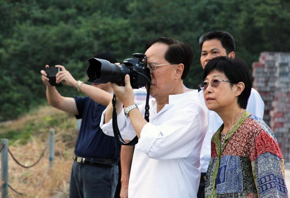 當(dāng)天,曾蔭權(quán)在夫人的陪同下,一身休閑裝,攜帶自己心愛的專業(yè)攝影器材來到飛天蠶生態(tài)茶園。漫步在風(fēng)光無限的茶園內(nèi),曾蔭權(quán)被景區(qū)的山山水水、奇花異草、自然生態(tài)深深吸引,頻頻駐足端起相機(jī)將眼中的美景收藏。在與象窩茶樹的近距離接觸時(shí),聽說象窩茶葉種植從不使用化肥,決不噴灑農(nóng)藥,嚴(yán)格實(shí)施生態(tài)種植,曾蔭權(quán)還情不自禁地采下一片茶芽品嘗。
