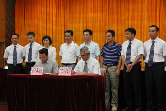 9月7日上午,捐資簽約儀式在縣委縣府大樓大會(huì)堂舉行。儀式上,縣長(zhǎng)葉銳代表縣政府與集團(tuán)代表副總裁龍飛波簽訂《捐資改造建設(shè)興育學(xué)校協(xié)議書》。