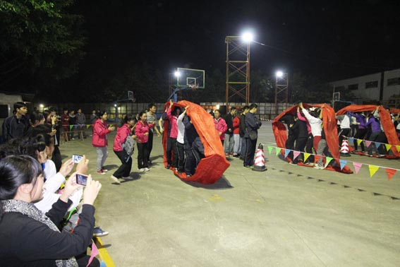珠行萬里、六人七足、無敵風火輪三個游戲項目,比的不是力量,而是團隊配合造就的速度,一個人失手,將會輸?shù)羧P比賽。比賽趣味十足,看那運送乒乓球的長隊伍,同在一起的七只大足以及迅速滾動的風火輪,讓隊員們的心聯(lián)系的緊緊的。
