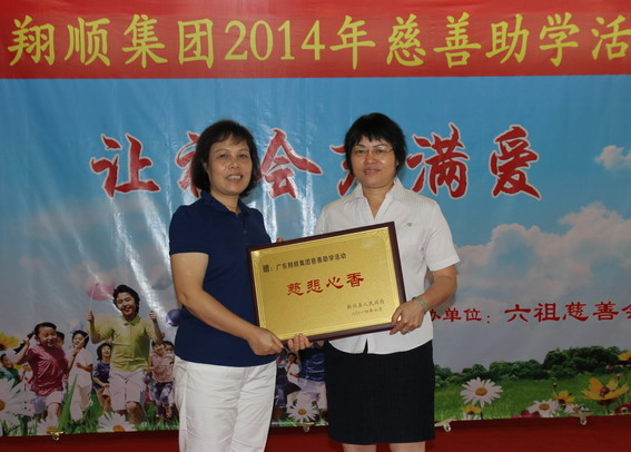 陳敏在發(fā)言中希望貧困學(xué)生不要辜負(fù)熱心人士的愛心和厚望,一定要把學(xué)習(xí)作為首要任務(wù),珍惜大好時光,發(fā)奮學(xué)習(xí),用豐富的科學(xué)理論和文化知識武裝自己、充實(shí)自己、陶冶自己,打牢人生成長進(jìn)步的根基。陳敏還向翔順集團(tuán)贈送“慈悲心香”牌匾,集團(tuán)總裁夫人蘇洪有代表翔順接受牌匾。
