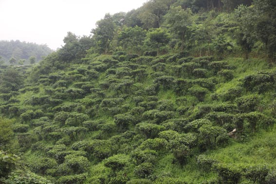 象窩山上有大片大片的茶場,分為舊茶場、新茶場及今年新開發(fā)的有機茶場。盡管是秋季,但走在山間小路,放眼望去,一片片茶樹翠綠欲滴,像鑲嵌在山坡上的綠寶石。我們還能不時看到茶農在茶樹叢中采摘嫩葉,真是一幅人們在山間忙碌勞作的美景。