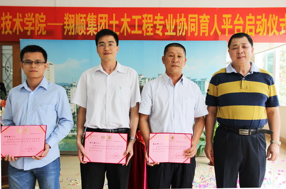 經(jīng)過翔順集團和建筑公司領(lǐng)導班子的深度考察,認為學院的辦學理念和集團對人才的渴望,對技術(shù)創(chuàng)新的追求非常相近,敲定合作意向。2014年5月20日,雙方簽訂校企合作協(xié)議,建立合作關(guān)系。6月-9月,集團人力資源部和建筑公司到學校甄選實習大學生,并確定22人到翔順建筑公司實習的名單。10月13日,該學院在我集團的實踐教學基地正式掛牌成立,奠定雙方合作大局。22名大學生正式開始在我集團的實習之旅。實習結(jié)束后,如達到崗位的能力要求,公司將優(yōu)先錄取就業(yè)。