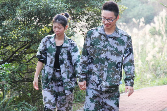 晚上吃過晚餐后就領(lǐng)取迷彩服。八點整,我們統(tǒng)一穿上神氣的迷彩服集中到操場進行隊列訓練,第一天就在嚴肅而緊湊的氣氛中度過。