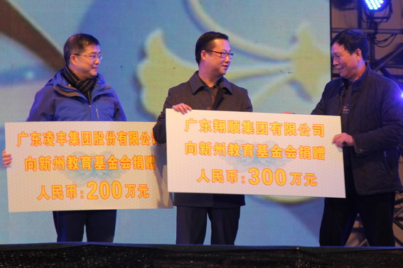12月19日晚,新州教育基金捐贈(zèng)儀式暨慶祝新興一中百年華誕文藝晚會(huì)在縣文化廣場(chǎng)盛大舉行。新興縣多家企業(yè)、鄉(xiāng)賢紛紛向新州教育基金會(huì)舉牌認(rèn)捐,籌集資金逾2000萬(wàn)元,為文藝晚會(huì)增添了濃郁的感恩情懷。