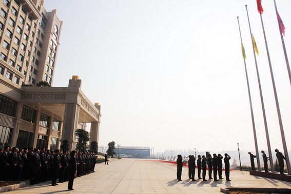 伴隨著激昂的進行曲,由翔順物業(yè)公司15名員工組成的護旗方陣昂首挺胸,護衛(wèi)著國旗和翔順公司旗齊步走到升旗臺。隨著主持人的指示,國旗和公司旗在國歌聲中迎著太陽冉冉升起,成為集團喬遷大喜里一道靚麗的風景。參加儀式的員工在旗幟下,紛紛許下了對祖國和集團的美好祝福。